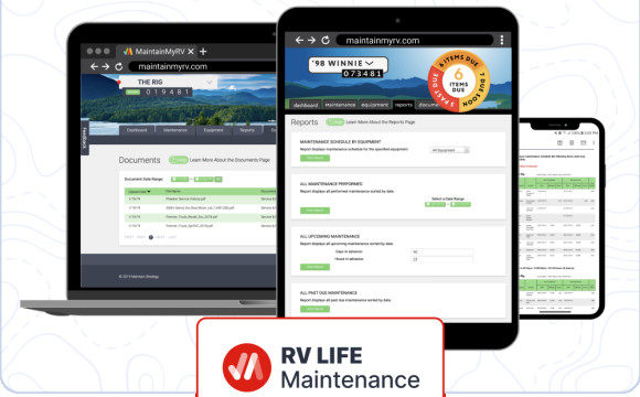RV LIFE Maintenance is a cloud-based service that works on your tablet, computer, and smartphone. It tracks upcoming maintenance dates and sends detailed reminder emails, showing what needs your attention, and also the last time you performed that ta...