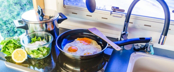Think you can’t cook gourmet in a small space? Think again. These meal prep tips make travel trailer kitchens shine.