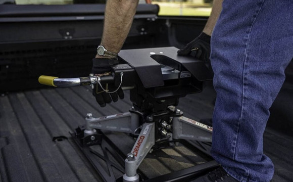 New foldable Recon Stealth fifth-wheel hitch gives RVers towing power (rated for up to 20,000 pounds) without sacrificing truck-bed space.