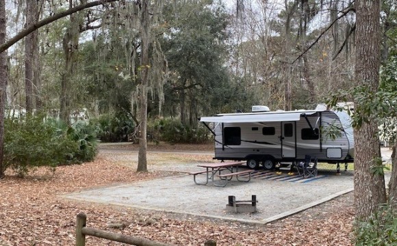 This park is beautiful. The campsites are reasonably spaced and a couple of a little private. The bath houses are clean and convenient. The only drawback is that the best campsites do not have sewer hookups. Our site was a pull through (#42) that did...