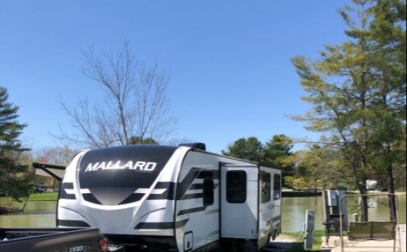 very friendly owners. It's a nice quiet campground with a 3 acre pond to fish in also have a family of mallards and some canadian geese. Each site has a grill, campfire ring, 2 chairs and table, and a glider swing. gravel pads with concrete pati...